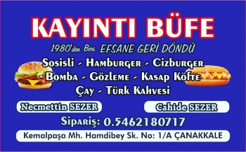 Yaşamak için beslenmeye ihtiyaç duyarız ancak yemek kimi zaman bir zevk halindedir. Bazen ise zaman bulamayız ve atıştırmalıklar yetişir imdadımıza. İşte tamda size göre bir mekân KAYINTI BÜFE bu kısıtlı ve yetersiz zaman aralığında sizlere enfes lezzetler sunabilecek sizlerin damak zevkinize hitap edebilecektir ÇANAKKALE de fast food yemek alanında harika lezzetleriyle ve sıcacık şirin mekânıyla siz değerli müşterilerini bekliyor.